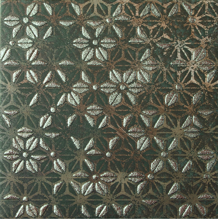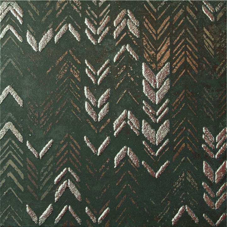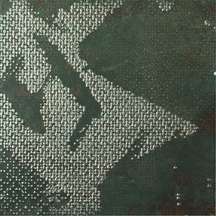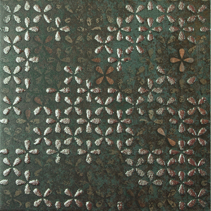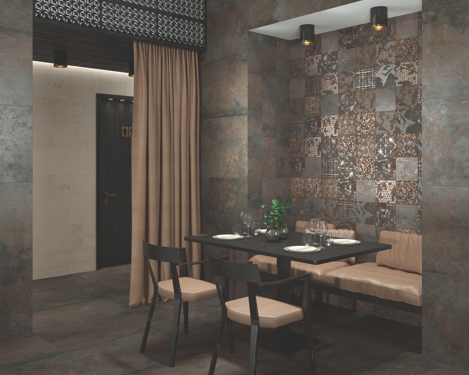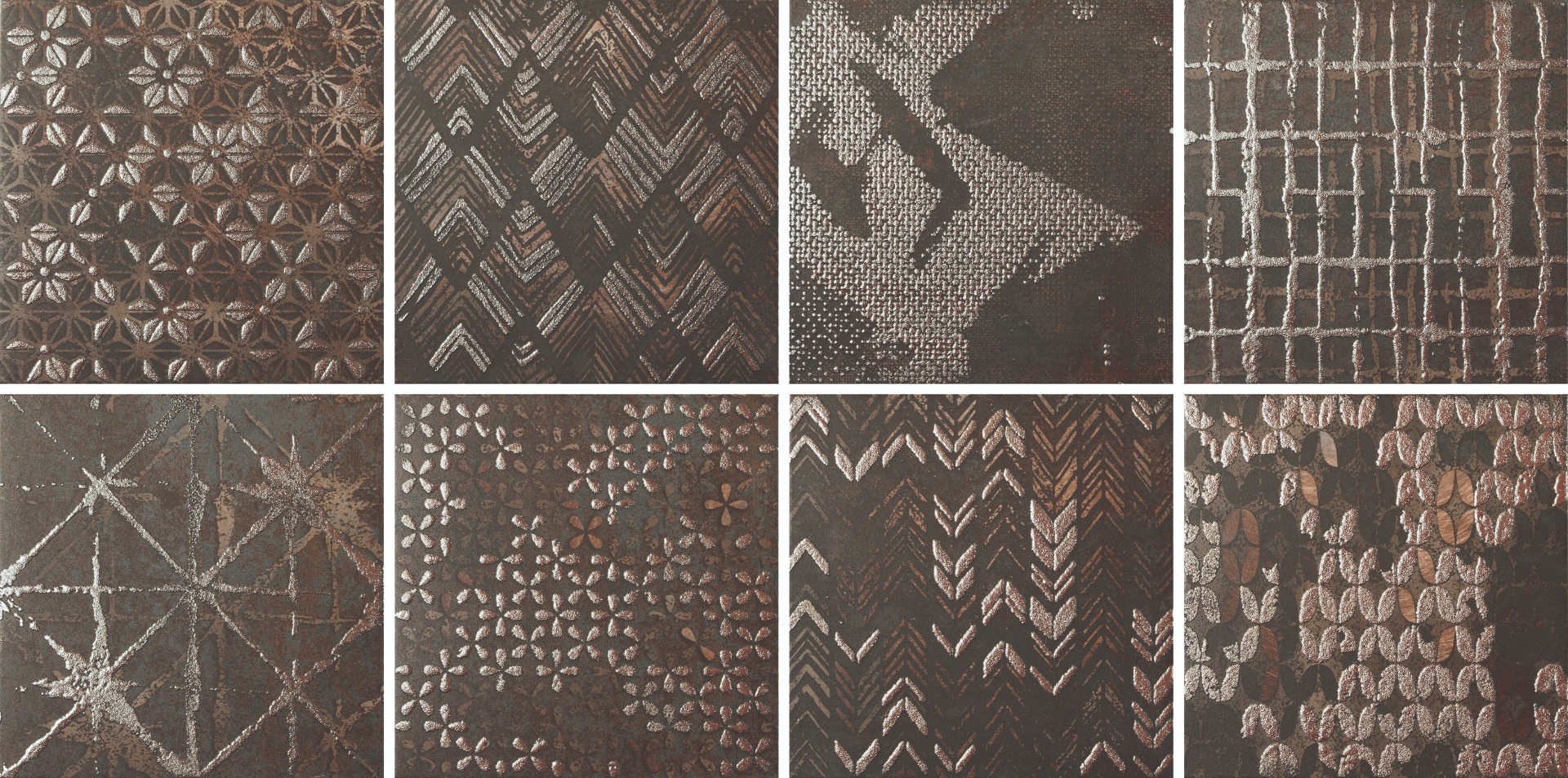 臨摹具有鏽蝕歲月痕跡的金屬質感,斑駁 卻簡單乾淨的素磚,